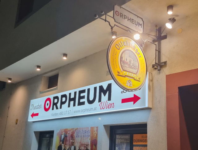 Das Wiener Orpheum liegt im 22. Bezirk und ist eine Kombination aus Beisl und Theater. Im Saal finden regelmäßig Lesungen, Musikaufführungen oder Kabarettprogramme statt.